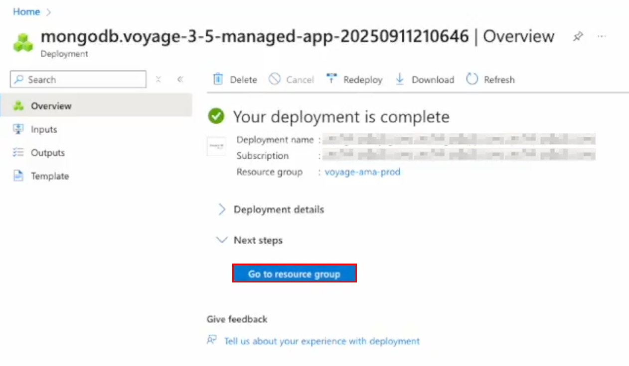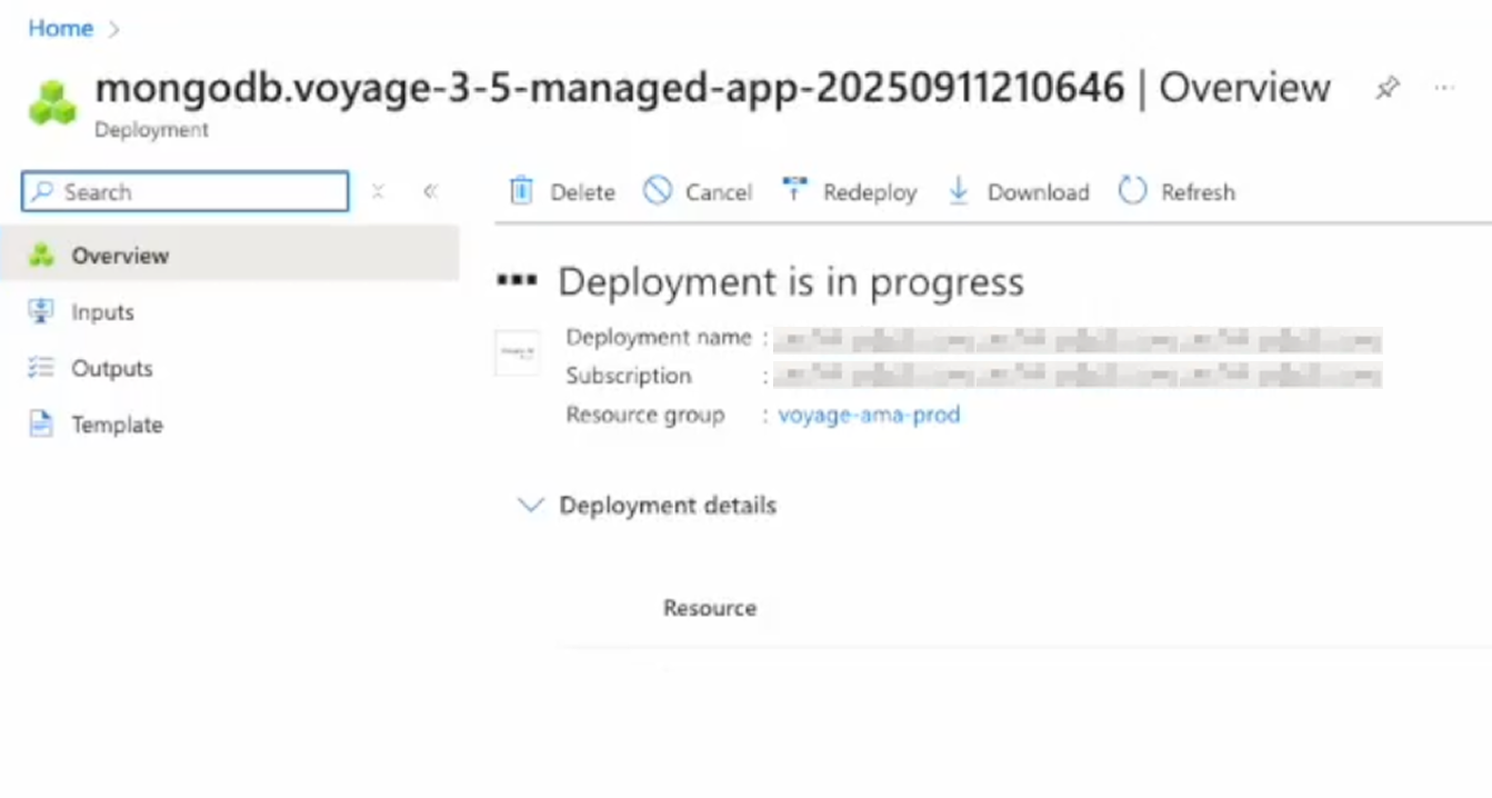 You can use Azure managed applications to deploy MongoDB Voyage AI models as real-time inference API endpoints in a customer Azure account and virtual network (VNet). Azure managed applications offer the following key benefits: