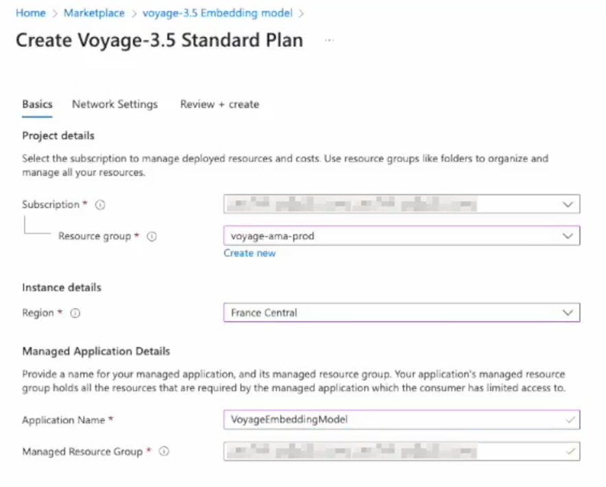Resource group | Select the resource group that contains your Voyage API endpoint. |